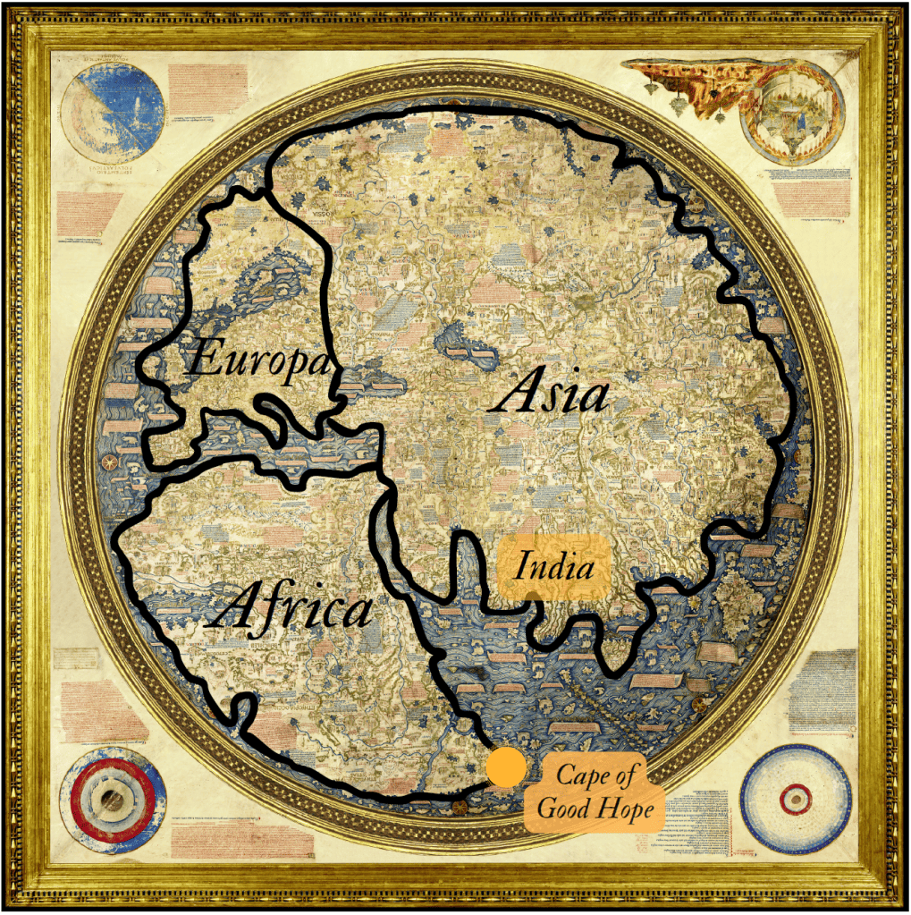 The Kingdom of Portugal, one of the most daring maritime civilizations in terms of self-determination, began to search for a solution. Among the archives owned by the Kingdom of Portugal was a map containing extraordinary information by a Venetian geographer named “Fra Mauro”. This map predicted that starting from Europe, one could reach India by going around the south of Africa. Although Fra Mauro does not specify exactly where he got this information from while compiling his map, it seems clear that Strabo’s writings gave him the idea.