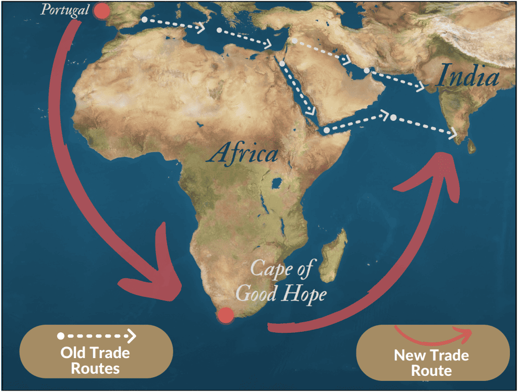 In the 1400s, Europe, struggling to break free from the webs of the Medieval Age, was trying to develop its trade with the eastern civilizations from which all kinds of clothing, spice, food, tools, etc. came. But there was also a rapidly growing neighbor that cut between East and West like a knife and gradually took control of the Mediterranean: The Ottomans. With each passing year, Europe’s trading kingdoms, such as Portugal and Castile, were becoming more and more hampered by the Ottomans. The Ottomans and other civilizations to the east demanded high taxes from these European traders. At the time, it was thought that the only connection between Europe and India was through the Mediterranean and the Middle East – so paying taxes to these civilizations was the only way through.